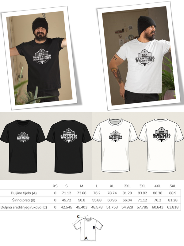 Dimenzije su iskazane u cm. Najtočniji način je da polegnete na krevet svoju majicu koja vam odgovara, tu majicu izmjerite i u tablici pronađete odgovarajuću veličinu.