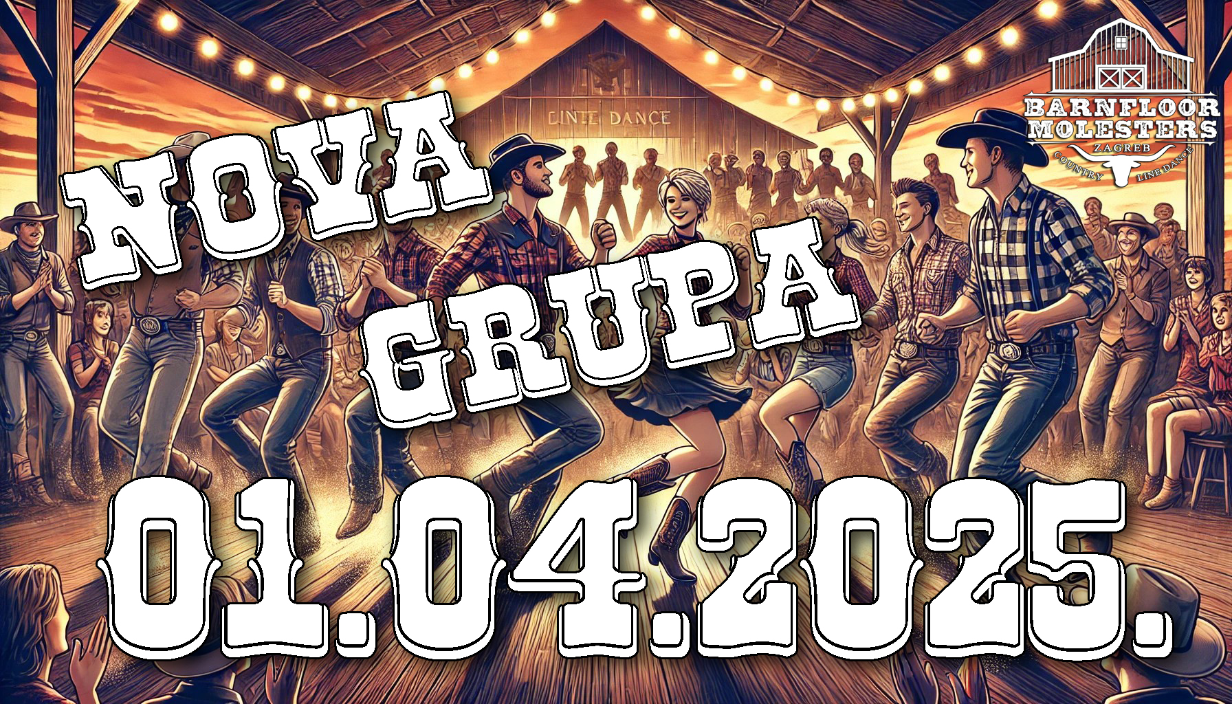 Zbog velikog interesa i ljubavi prema country line dance-u, s ponosom objavljujemo da smo u veljači 2025. pokrenuli novu grupu polaznika – i već sada možemo reći da nam ide odlično!